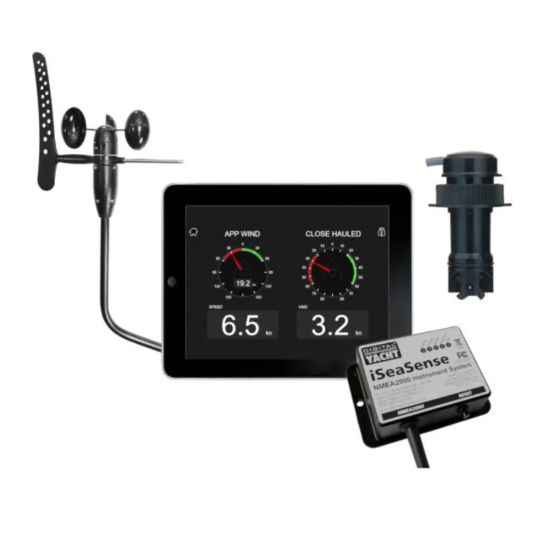 - Este pack de instrumentación para velero incluye servidor WiFi iSeaSense, cableado NMEA 2000 y un transductor avanzado de profundidad, velocidad y temperatura con sensor de escora y cabeceo.